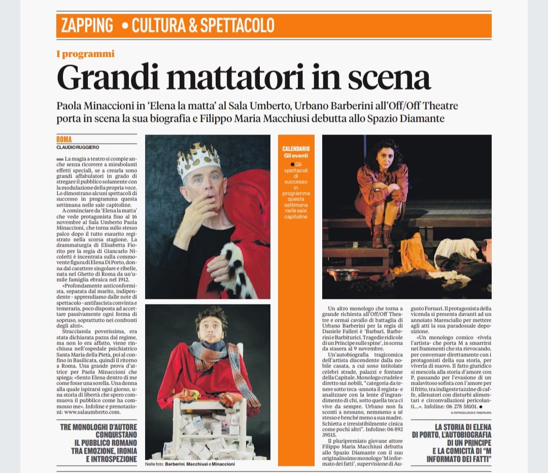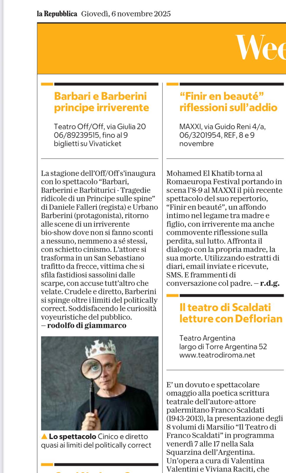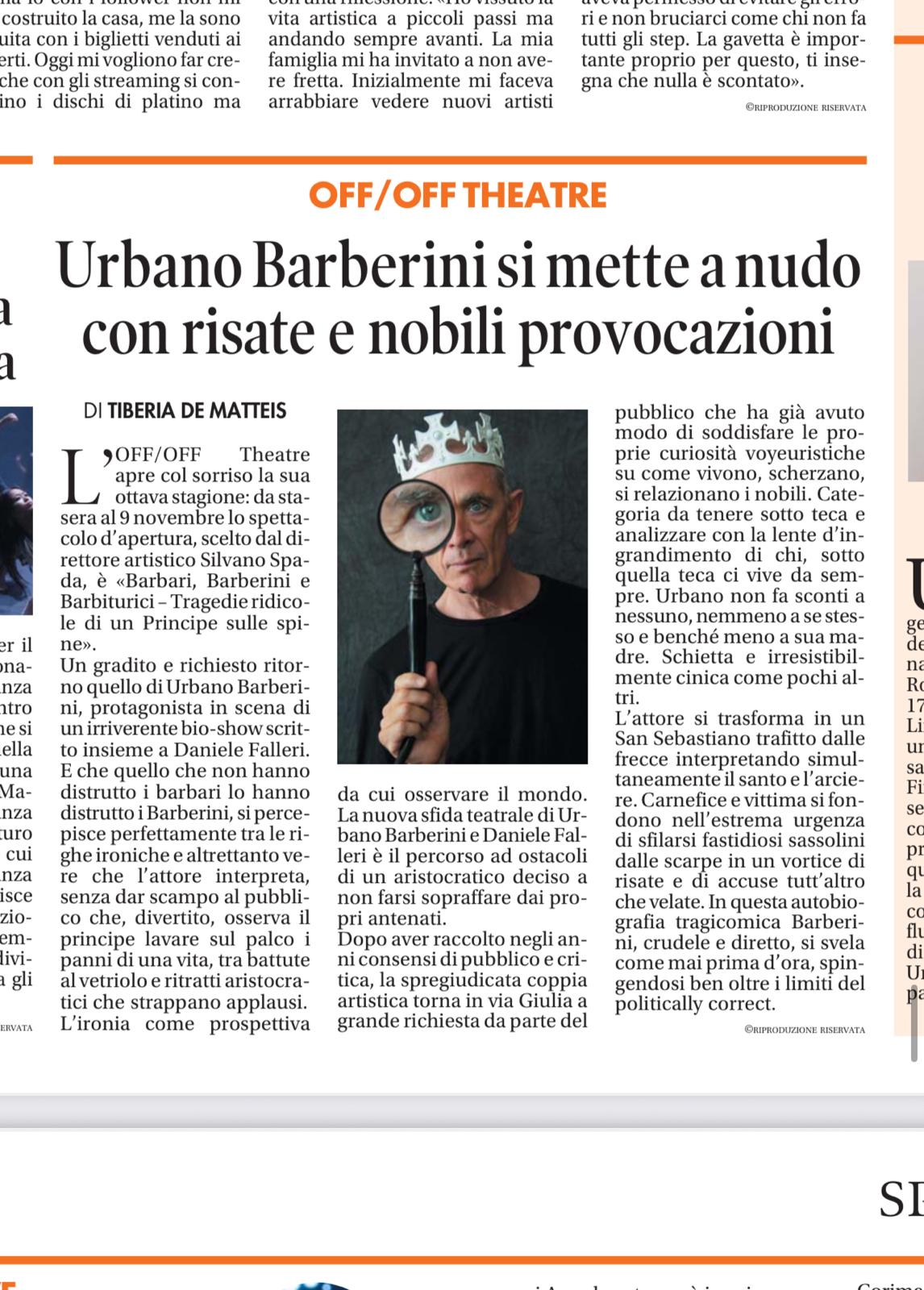 “Urbano Barberini si mette a nudo con risate e nobili provocazioni”