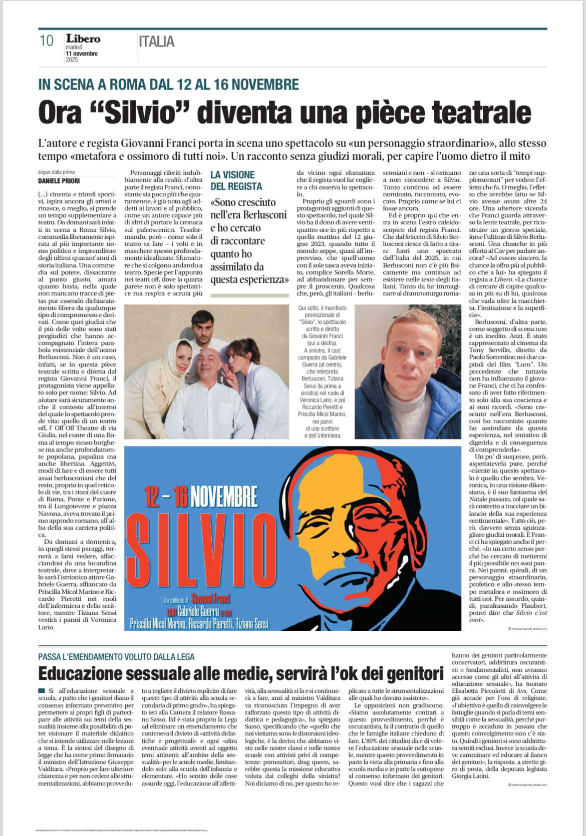 Rassegna Stampa Libero SILVIO 12 – 16 novembre Libero “Ora “Silvio” diventa una pièce teatrale” leggi l’articolo PHOTO-2025-11-11-14-35-02 libero_11_11_25