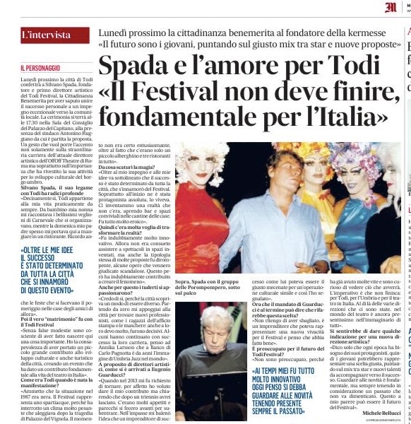 Nell’intervista rilasciata, Spada parla con passione del suo amore per Todi, del ruolo fondamentale del Festival per la cultura italiana e della necessità di guardare avanti con idee fresche, senza dimenticare il valore del passato.